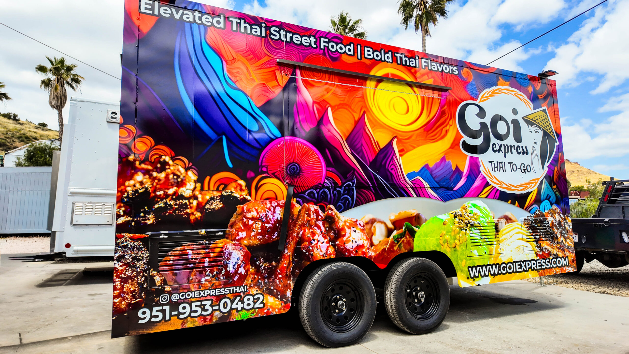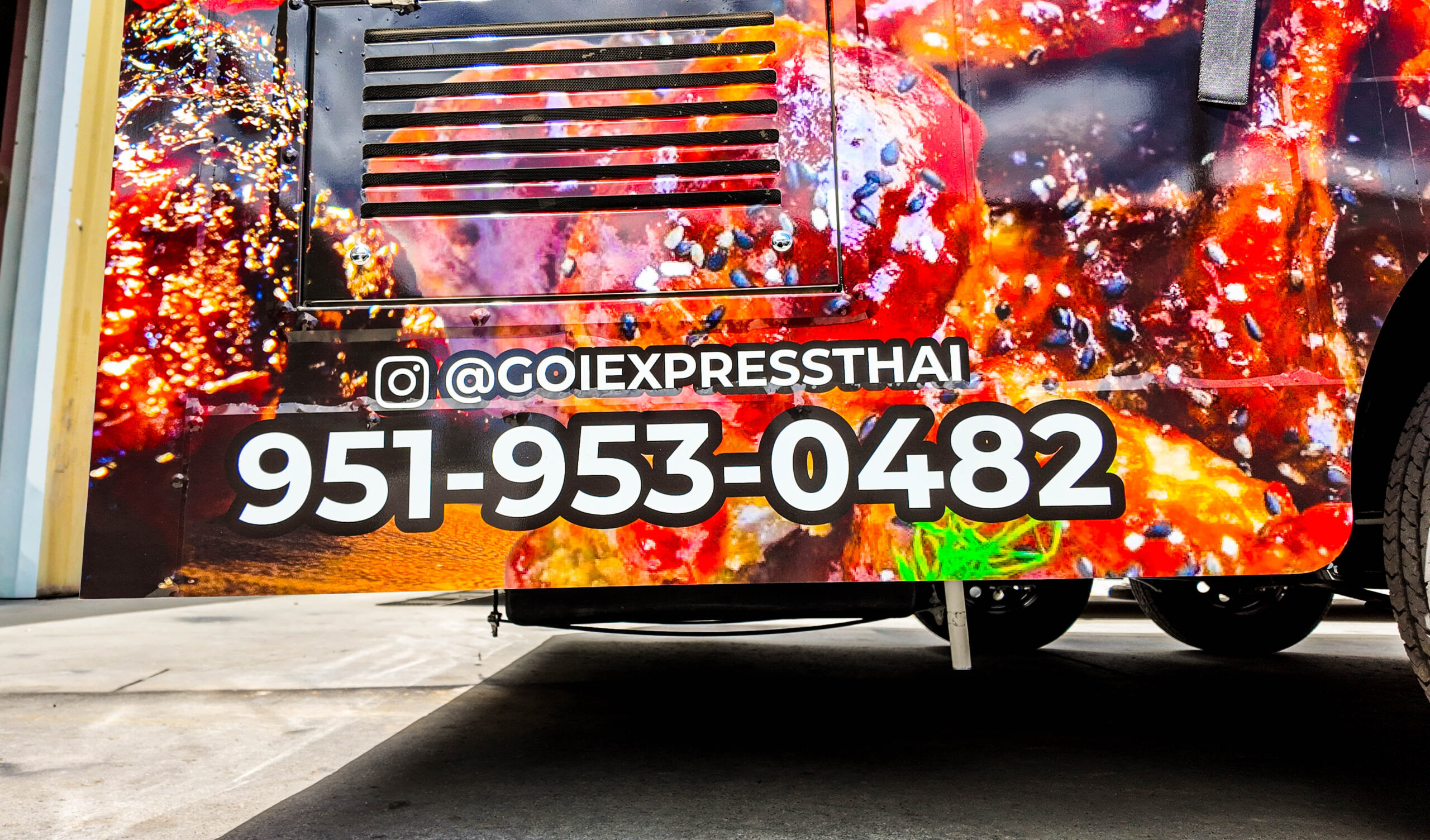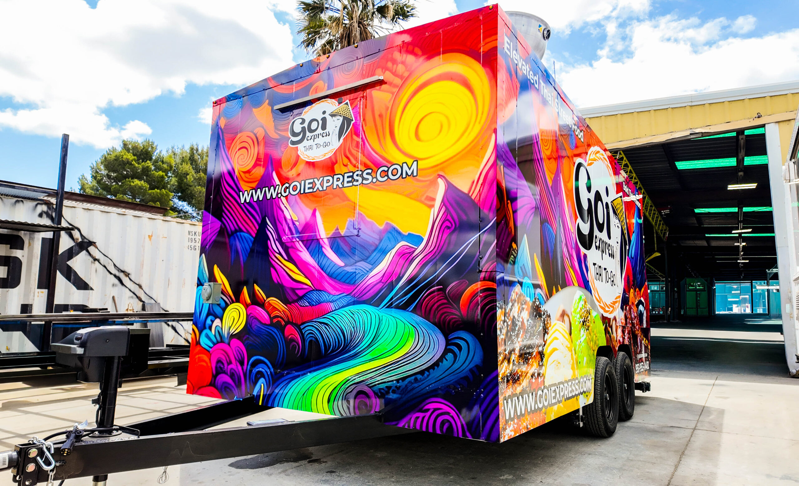 The outside of your food truck, food trailer, experiential vehicle or other mobile business is a rolling billboards for your company. Take advantage of this free marketing space by installing a custom food truck wrap that builds brand awareness and attracts customers. Work with our in-house graphic designer to get a custom wrap design that matches your brand. Our food truck wraps, food trailer wraps and experiential marketing vehicle wraps are made from durable, UV-resistant materials and professionally installed so your food truck will look great for years to come.